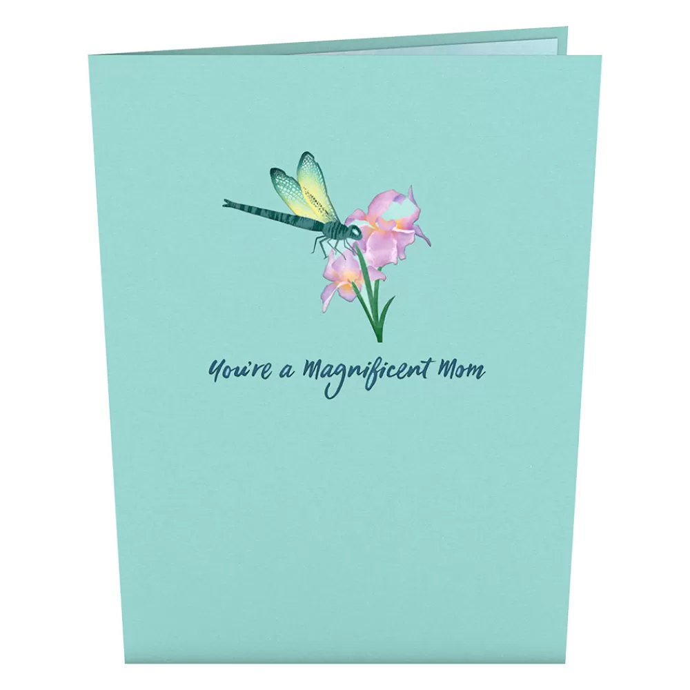 The Mother’s Dragonfly pop-up card is 5 inches wide by 7 inches tall.