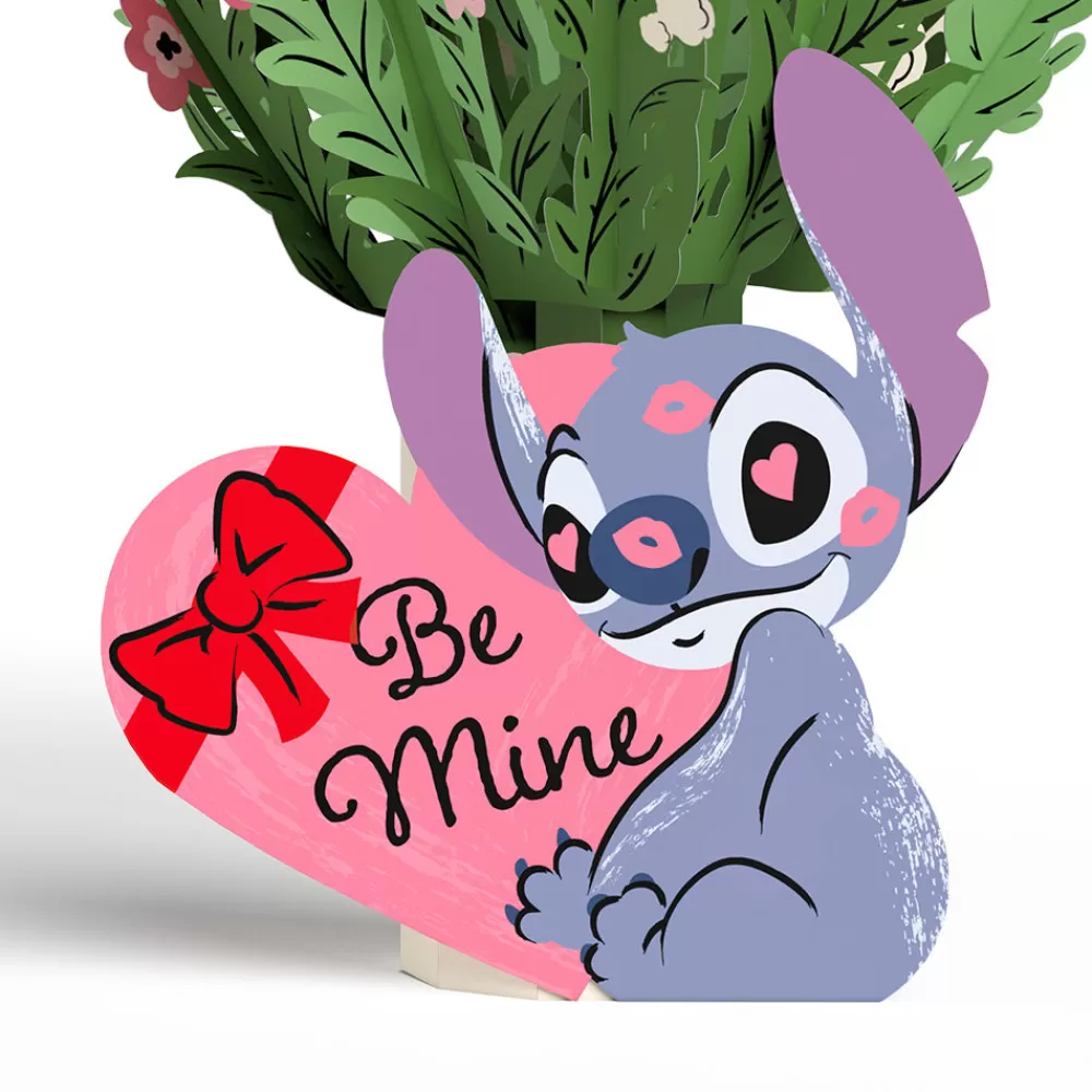 Included in the Disney’s Stitch Be Mine Pop-Up Card & Flower Buds Bouquet Bundle: