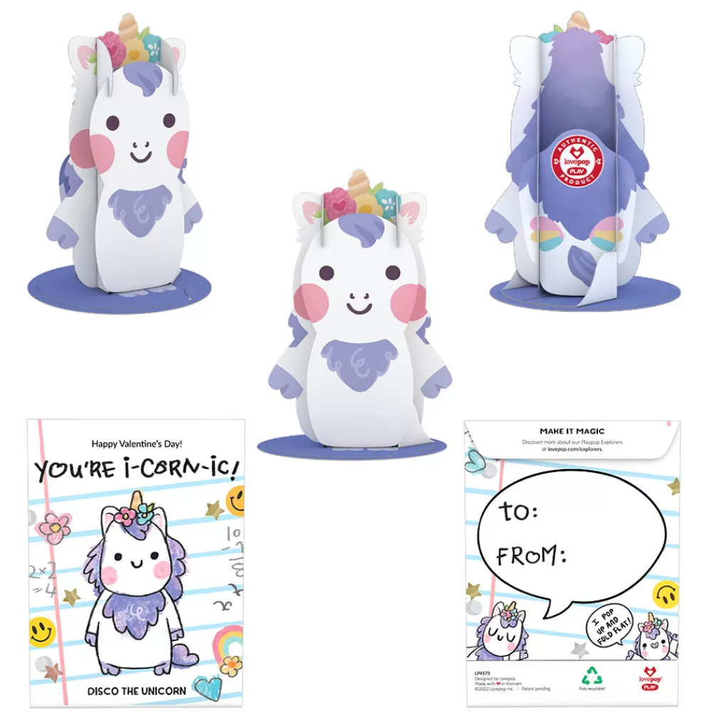 Share the cutest pop-up characters in your kids’ classroom this Valentine’s day! This pack includes 8 envelopes that come with cute pop-up characters. Simply press down on the base of each character to watch them magically pop up! Each classmate will have a unique party favor to take home with them.