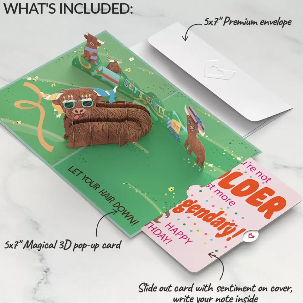Lovepop Birthday | Highland Cow Birthday Pop-Up Card and Not Older Just More Legendary Sentiment Set