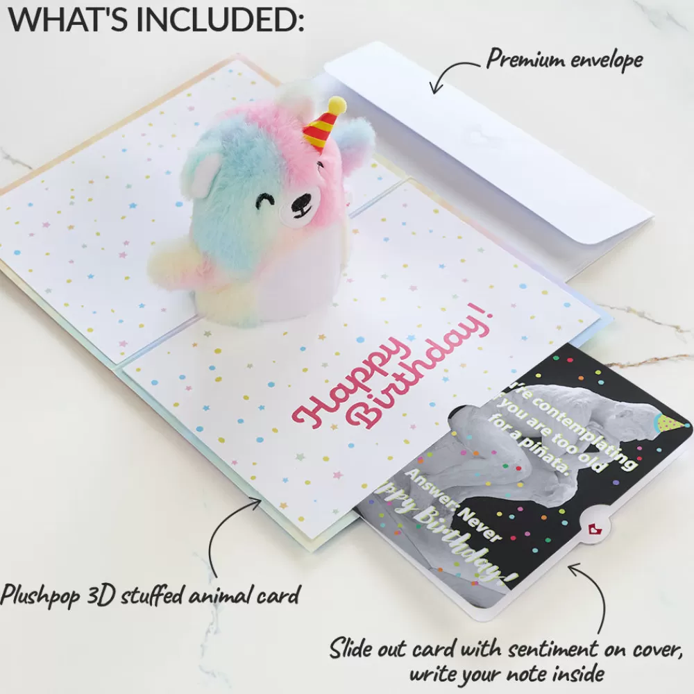 Lovepop Plushpop | Birthday | Rainbow Bear with The Thinker Birthday Plushpop Card and Sentiment Set