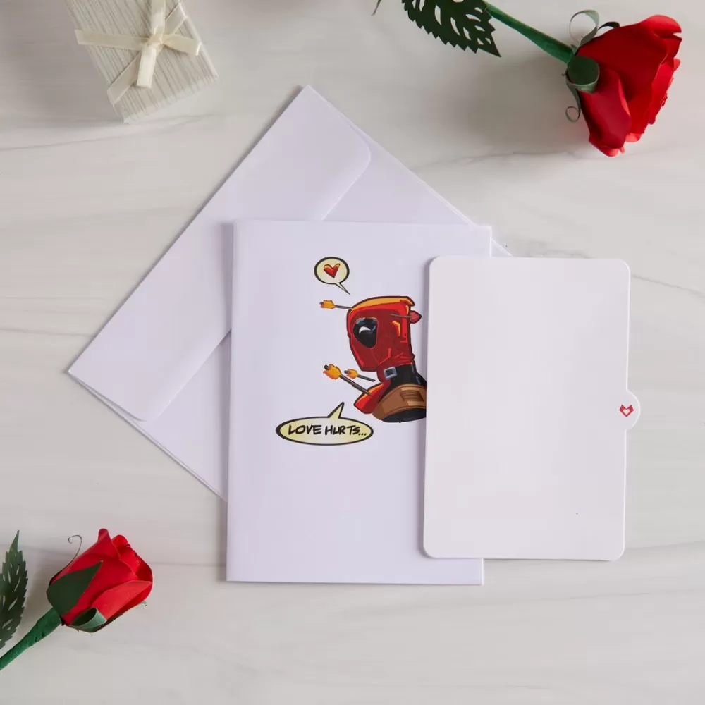 Here comes Deadpool…. just in time for Valentine’s Day. Sometimes love hurts — but it’s worth it! Share this humorous card with your bae and let them know that love isn’t dead with this crazy Marvel Super Hero design.