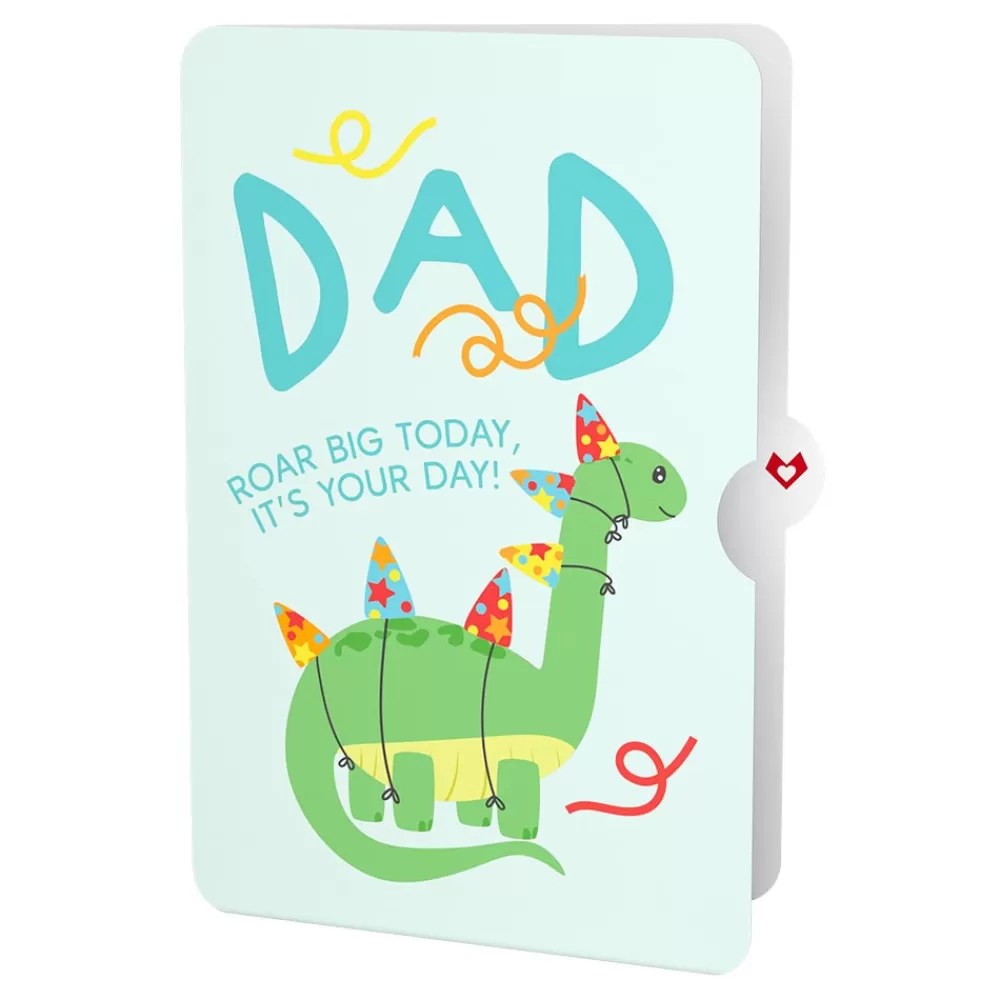 - Special Sentiment: The companion sentiment tag reads, “Dad, roar big today, it’s your day!” with a charming illustration of a dinosaur decked out in party hats and streamers. This message is a fun and lighthearted way to make Dad feel celebrated.