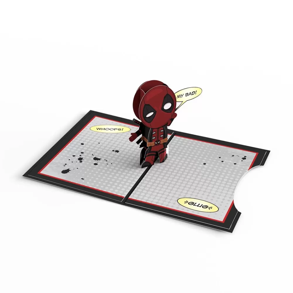 Description: These pop-up cards fit together like nesting dolls, creating a ripple effect with Deadpool-themed birthday messages! Wish someone special in your life a happy birthday with this collection of hilarious nesting birthday cards.