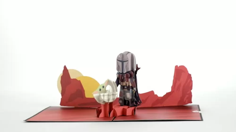 The A Mandalorian™ Father’s Day pop-up card is 5 inches wide by 7 inches tall.