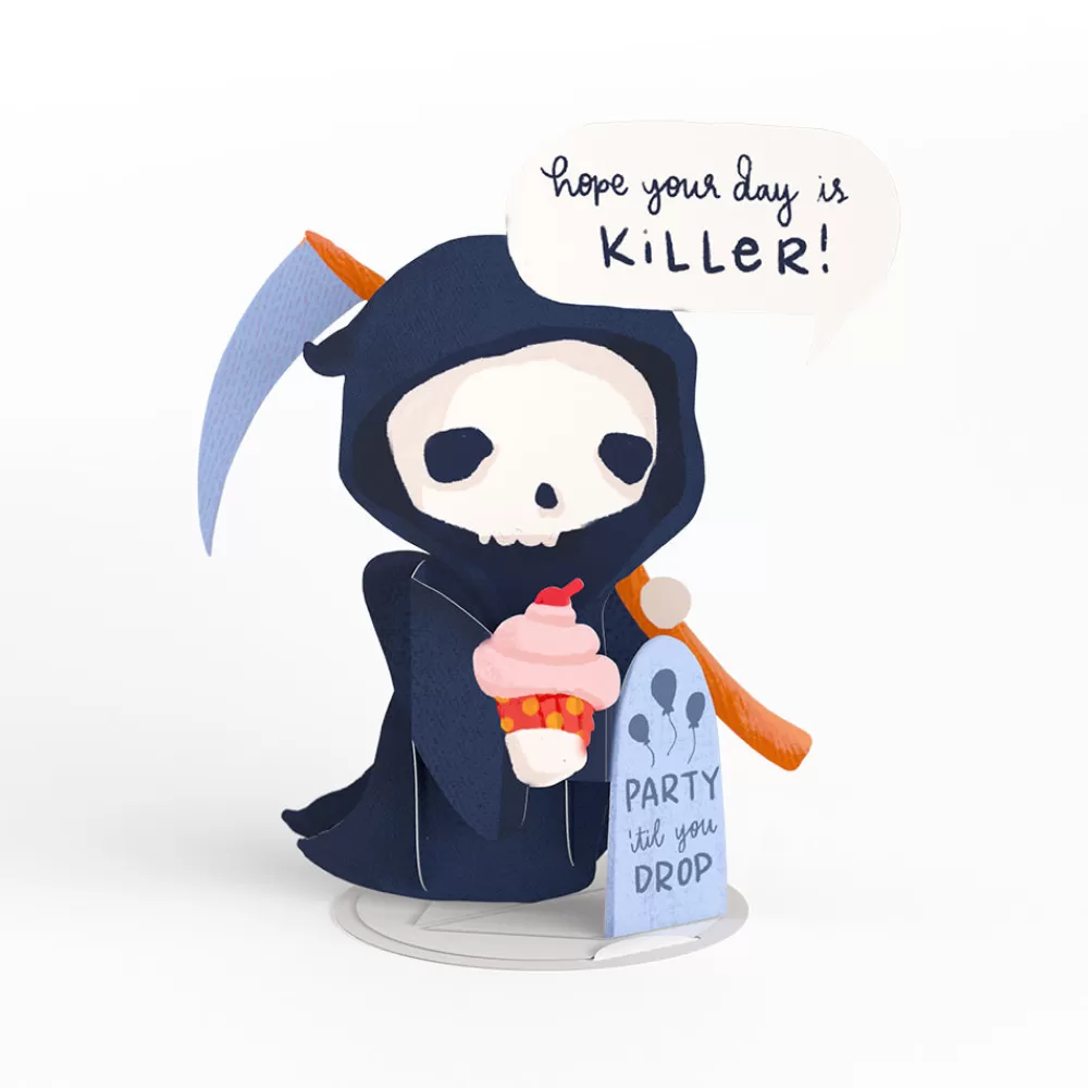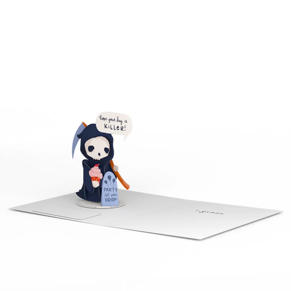 Description: Looking for a birthday card that’s sure to get a laugh? The Happy Birthday, Grim Reaper: PopPals Card is perfect for friends and family who appreciate dark humor. The card comes with a cute pop-up character that’s sure to make them smile. Simply open the card and pull the tab to unlock the character for displaying on a desk, table, shelf, and more.