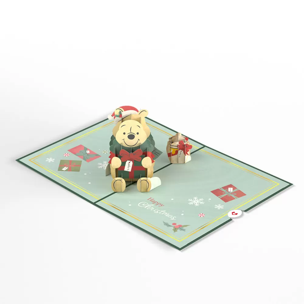 Description: Wish the Disney’s Winnie the Pooh fan in your life a happy Christmas with a holiday Pooh Bear themed pop-up card. Send to a friend, partner, or someone special who loves Pooh, Tigger, and Piglet.