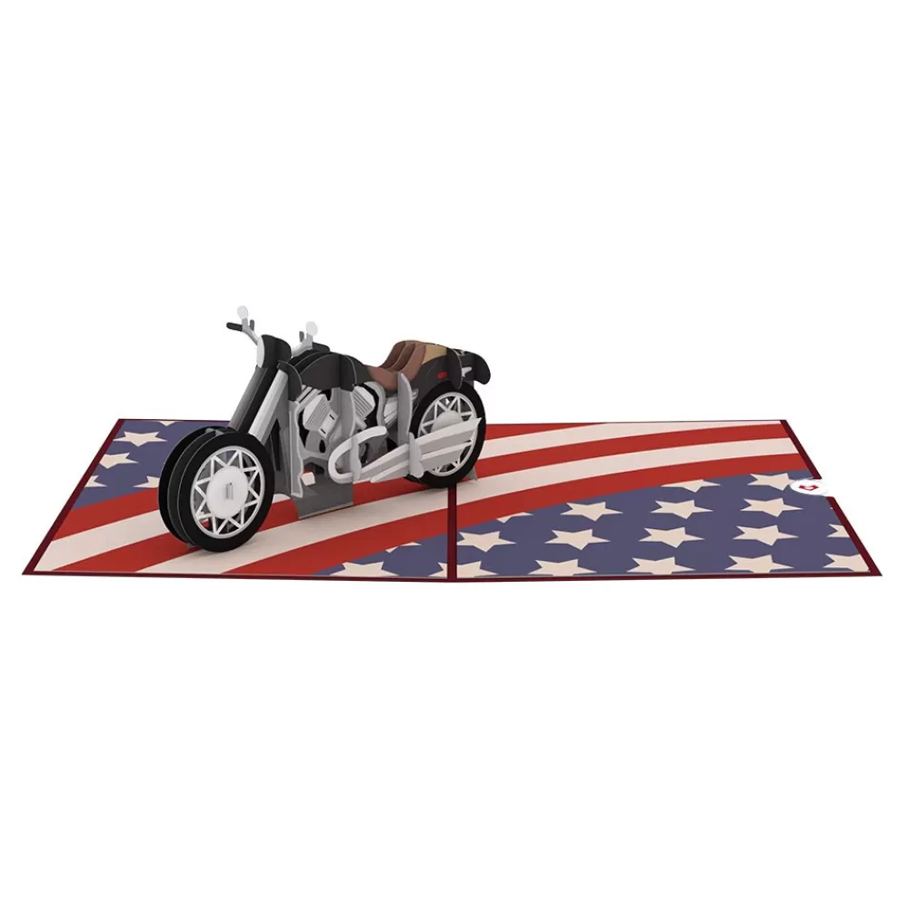 The American Motorcycle pop-up card is 5 inches wide by 7 inches tall.
