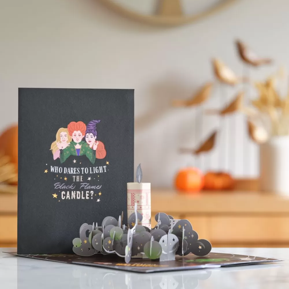 Disney’s Hocus Pocus Black Flame Candle pop-up card is the perfect way to surprise any family member, friend, or co-worker who lives for all things Halloween. This scary sweet design will be the talk of the town!