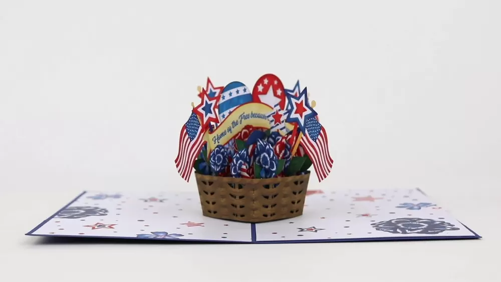 On Independence Day every year, Americans around the country unite in a celebration of independence and nationhood. This holiday is also a great excuse to get together with friends and family, relax, and have fun. Consider gifting this special Americana Basket 3D card to a loved one, neighbor, or colleague this year. This unique greeting card could also be a thoughtful token of appreciation for anyone you know who has served the country bravely.