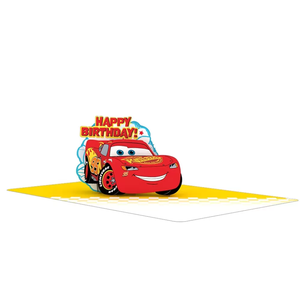 “Ready. Set. Celebrate!” is written on the cover of this speedy birthday card. Upon opening, Lightning McQueen pops up smiling with a “Happy Birthday” message! Celebrate another lap around the track with this fan-favorite Cars character. Any racing fans will adore this birthday card for kids!