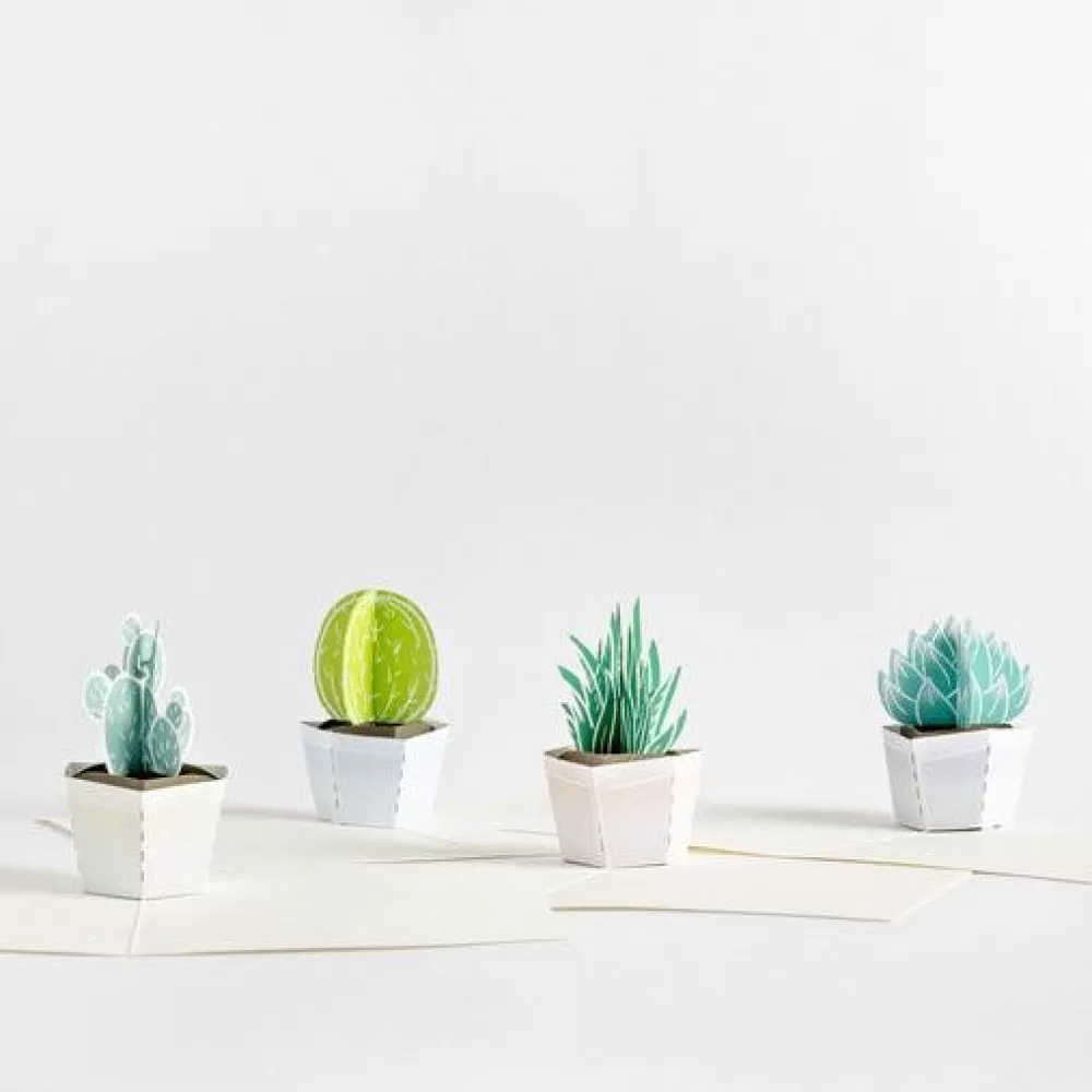 Treat them to the trendiest greenery with our Succulent Notecards 4-Pack. This pack of four Notecards features full-color 3D succulent and cactus sculptures and whimsical front cover illustrations in notecard-sized proportions. Each thoughtful design was dreamed up to make it simple to make every occasion magical. Included in this pack are four unique, desert-ready designs: Aloe, Snake plant, Barrel cactus, and Prickly pear cactus.
