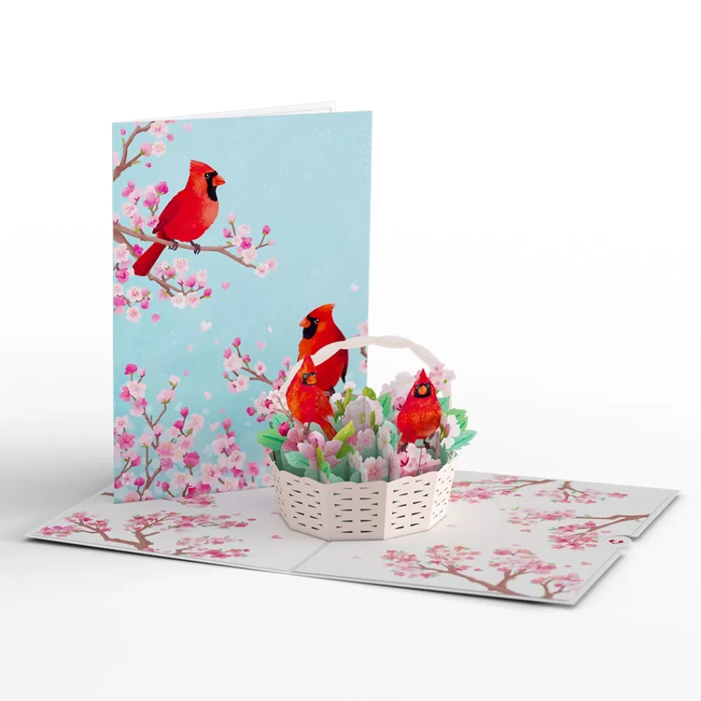 - Cherry Blossom Basket with Cardinals Pop-Up Card