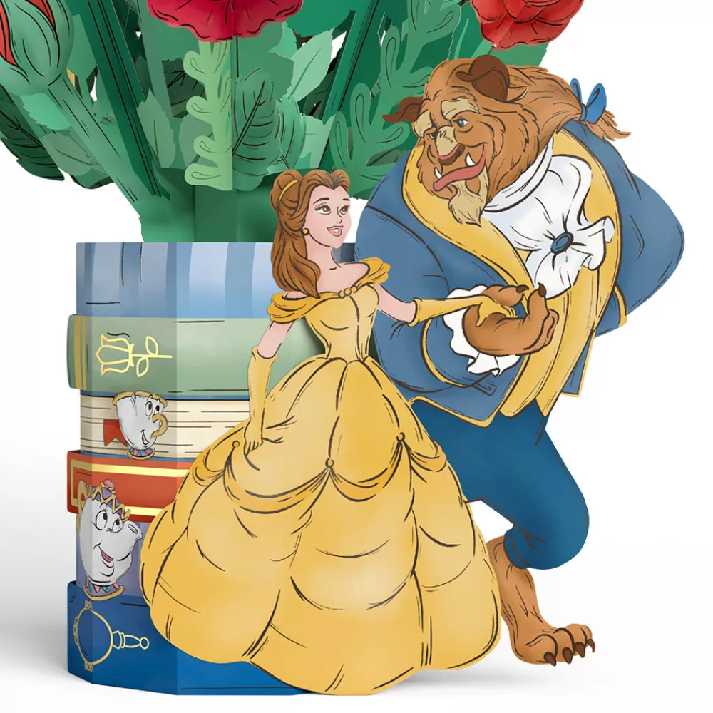Included in the Disney’s Beauty and the Beast Pop-Up Card & Flower Buds Bouquet Bundle: