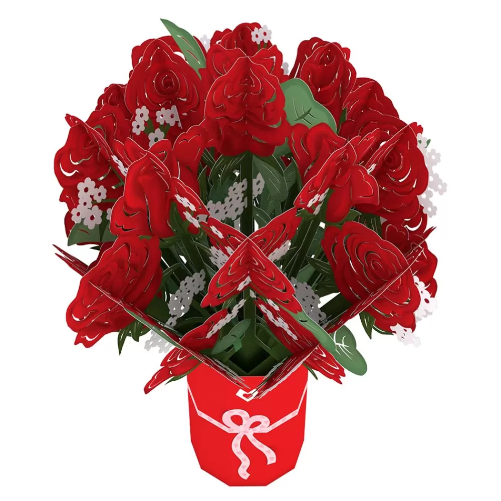 Quantity: One pop-up flower bouquet and one pop-up card. The card includes a Lovepop Note, a blank note card that slides away with your own personal message, and one white envelope.