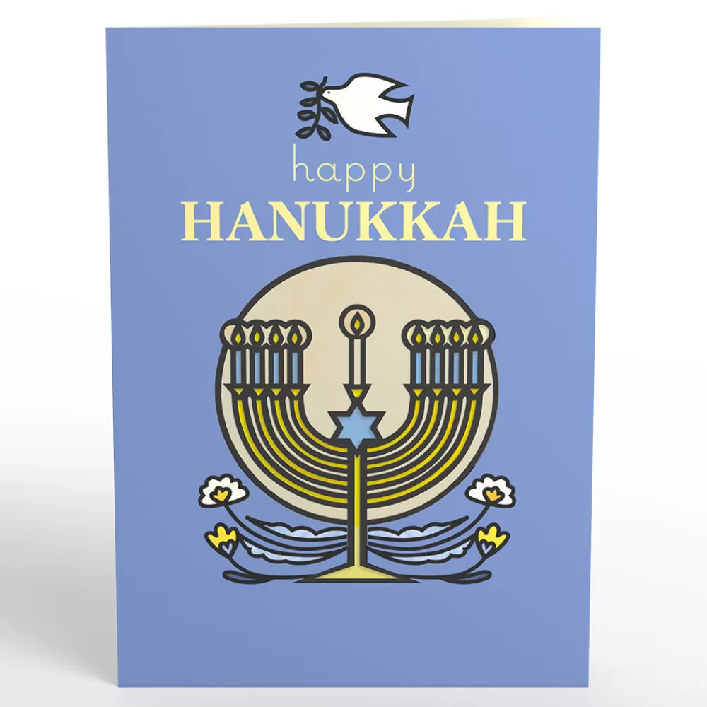 Send a little sunshine with our collection of ! These beautifully crafted greeting cards open to reveal a special surprise — a removable suncatcher gift. Made of colored transparent acetate, the suncatcher comes complete with a string for hanging. Position in a window to admire the colorful shadows it throws when hit by light, creating a mesmerizing display! Perfect for celebrating Hanukkah with your family, friends, and other Jewish loved ones, this unique combination of card and gift will brighten anyone’s day.
